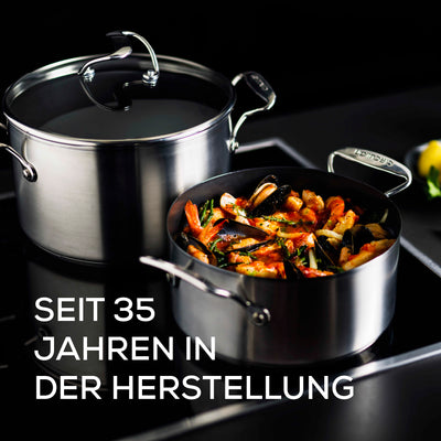 Kochen Sie furchtlos und genießen Sie jeden Moment mit Circulons fantastischer Produktpalette, die speziell für Sie entwickelt wurde. Unsere spezielle und innovative Technologie stellt sicher, dass unsere Antihaft-Leistung unübertroffen ist. Verabschieden Sie sich von klebrigen Situationen - wir garantieren, dass Ihr Essen nicht an unseren Pfannen haften bleibt und Ihr Kocherlebnis reibungslos verläuft. Kein lästiges Einweichen oder Schrubben mehr; unsere Pfannen sind kinderleicht zu reinigen und ermöglichen es Ihnen, sich auf den Star der Show zu konzentrieren - Ihre köstlichen Kreationen!